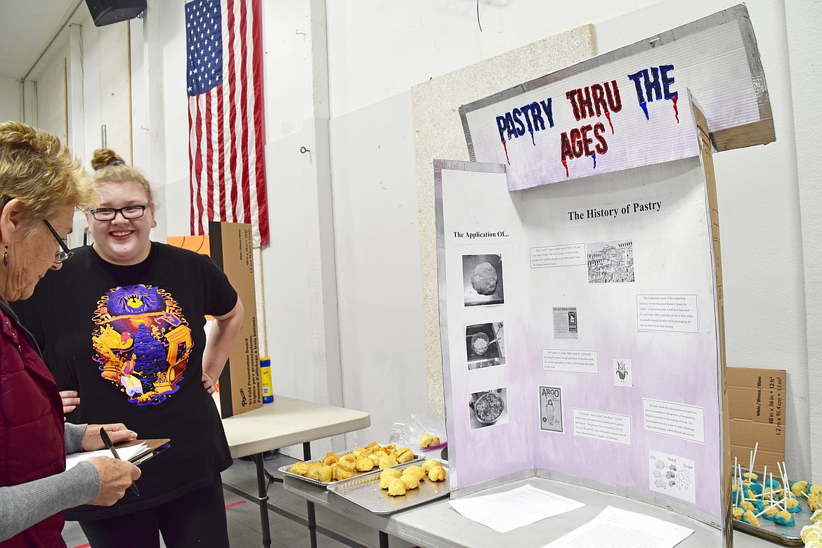 Everyone ate up Kendell Kurrus’ presentation. Literally. Her project, called Pastry Thru the Ages, not only displayed the history of baked goods, she prepared rolls with cinnamon and savory pasties for observers to enjoy. Perhaps a career in culinary arts is in her future.