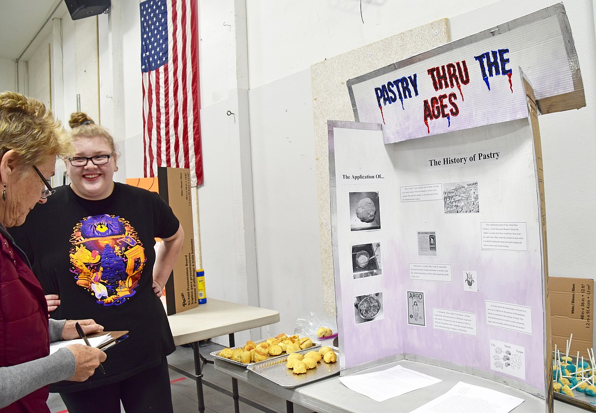 Everyone ate up Kendell Kurrus’ presentation. Literally. Her project, called Pastry Thru the Ages, not only displayed the history of baked goods, she prepared rolls with cinnamon and savory pasties for observers to enjoy. Perhaps a career in culinary arts is in her future.