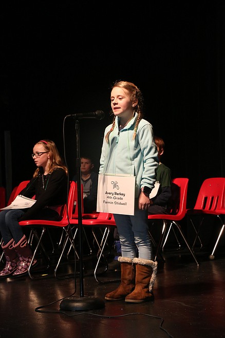 Competing in the spelling bee in the fourth grade were: Ruthie Laughridge, Avery Berkey and Jaxon Maas of Farmin Stidwell Elementary; Kane VanStone and Sophia Walker of Hope Elementary; Beckham Stewart, Moriah Karst and Bodi Demmons of Kootenai Elementary; Mia Ratigan and Spender Cunningham of Sagle Elementary; Rowan Komberec and Audrey Martinez of Southside Elementary; and Brennan Roop and Dexter Simmons of Washington Elementary.