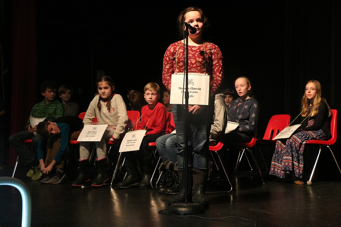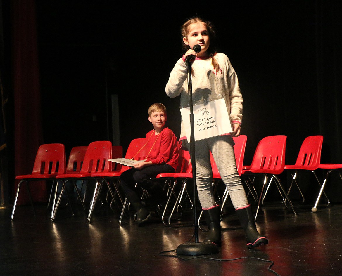 While the fifth grade bee wasn’t as much of a marathon as the fourth grade bee, it proved a fierce battle — and offered its own moment of levity as Northside Wyatt Lang and Ella Flynn battled for eight rounds to claim top honors.