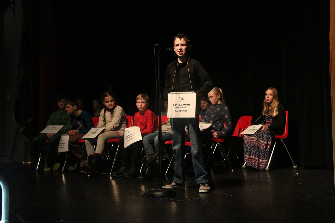 Competing in the spelling bee in the sixth grade were Sophie Capodagli, Sterling McStott and Dmitri Boran of Farmin Stidwell Elementary; Foxanne Ryan-Downing and Solomon Holderman of Hope Elementary; Kate Marks, Megan Dixon and Jack Baker of Kootenai Elementary; Landon Fuller and Dallen Williams of Northside Elementary; Coen Smith and CayliJo Giard of Sagle Elementary; Chloe Envik and Jacob Roland of Southside Elementary; and Jace Dick and Jasey Treman of Washington Elementary.