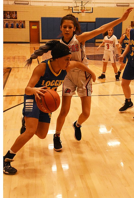 The Lady Loggers relied again and again on Syd Gier’s deft ball-handling to break the press. Later, coach Jackie DeShazer complimented Gier’s play.