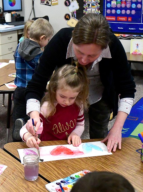 Indeed, the holiday is coming up, and in Nicolette Bales’ kindergarten classroom, Valentine’s Day hearts are drawn with a “pop.”