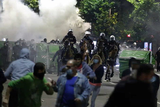 The clashes happened a day after protesters fought running battles with police in the capital and tried to enter the country’s parliament after Vucic announced that a weekend curfew would be reintroduced two months after it was first lifted.