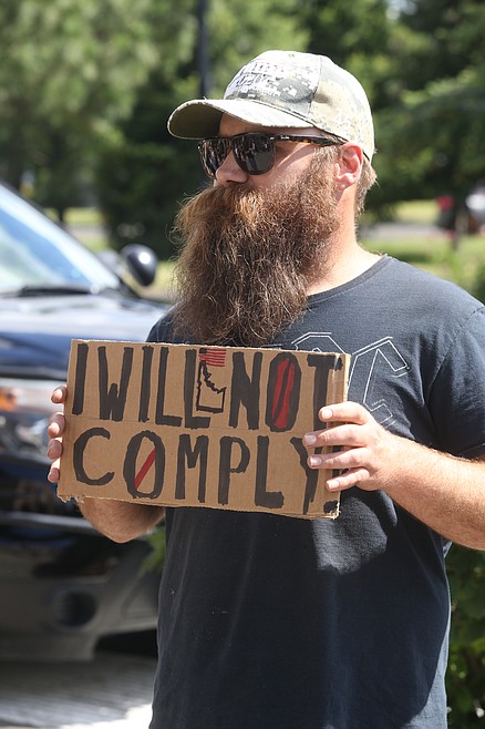 HAYDEN — Jake Kopp stood outside Friday’s meeting of the Panhandle Health District board with a sign that read, “I will not comply.”