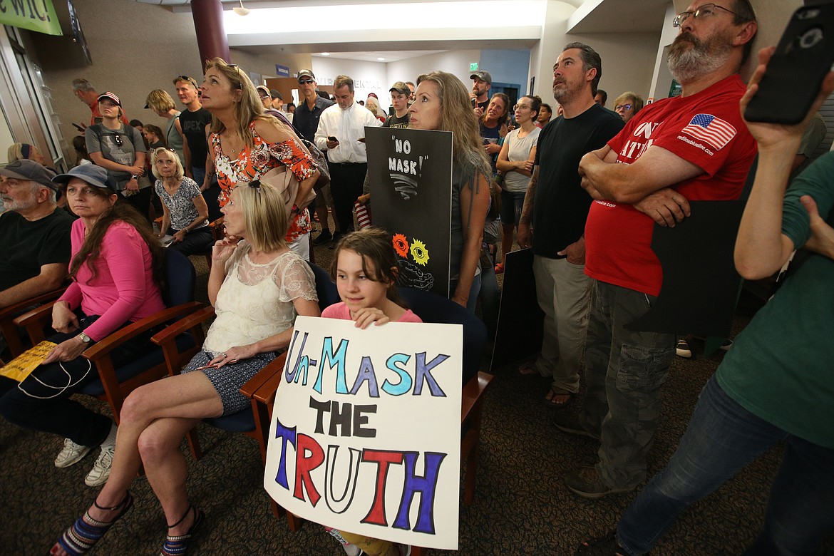 They yelled and jeered when people spoke in favor of masks, and cheered when others testified that masks were unnecessary.