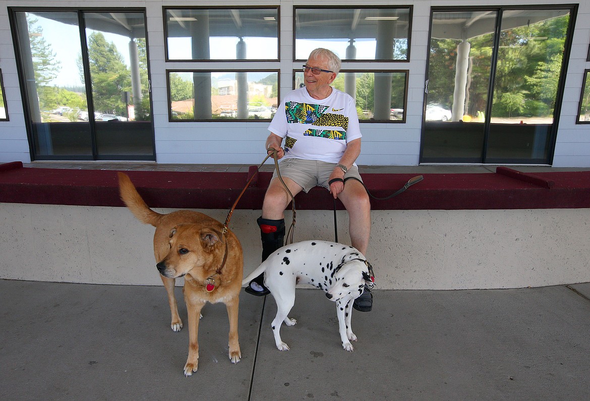 It doesn’t stop him from walking his two dogs, Cheyenne and Smokey, who joined him in his office.