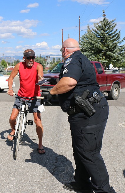 Another, after asking for — and receiving a second packet of masks for her parents — told Sandpoint Police Sgt. Mike Hutter they were thankful for the city helping keep them safe.