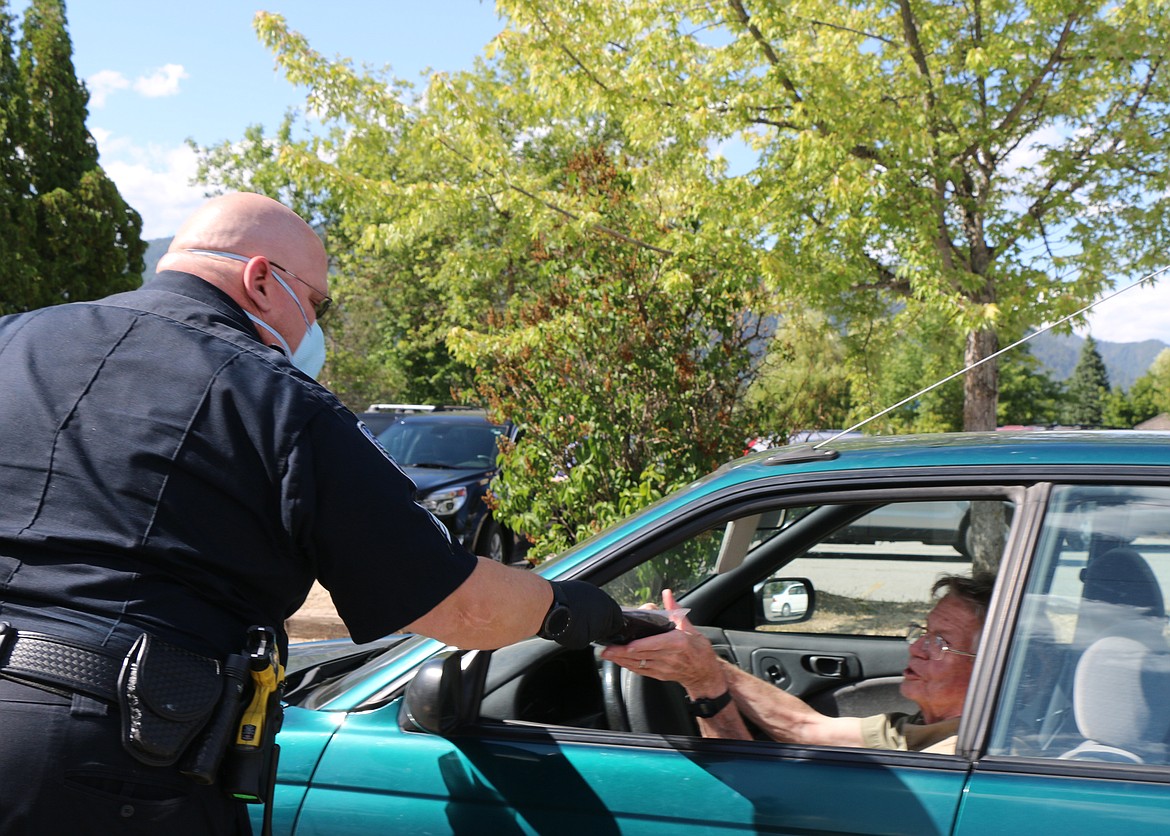 While it took a few minutes to sort through the congestion, with one Sandpoint Police officer at both the eastern and western entrances to Travers Park parking lot, those who showed up for the giveaway had nothing but gratitude and appreciation.