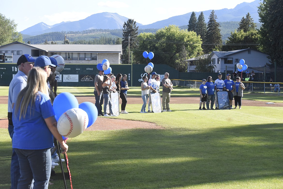 Libby fans celebrated the departing players in a short ceremony before the second game. One-by-one, catcher Trey Thompson, second baseman Alex Svendsbye, third baseman Moxley Roesler-Begalke, outfielder Chandler Bower, shortstop Quade Anderson and Offenbecher took the field with their families. They received balloons and framed player posters featuring their own likeness.