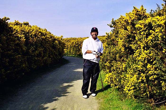 Everything down toward the sea on your right — the way the fairway slopes — is an unplayable lie and a Titleist lost in the gorse.