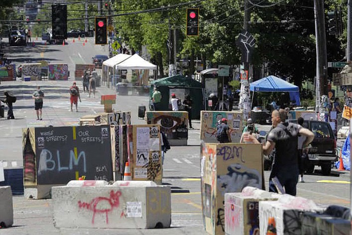 Protesters cordoned off the several-block area, known as CHOP, near a police station after clashes with officers. Seattle riot squads unleashed tear gas, pepper spray and flash-bangs on large crowds of mostly peaceful protesters, drawing condemnation from many city leaders and a federal court order temporarily banning the use of the weapons on demonstrators.