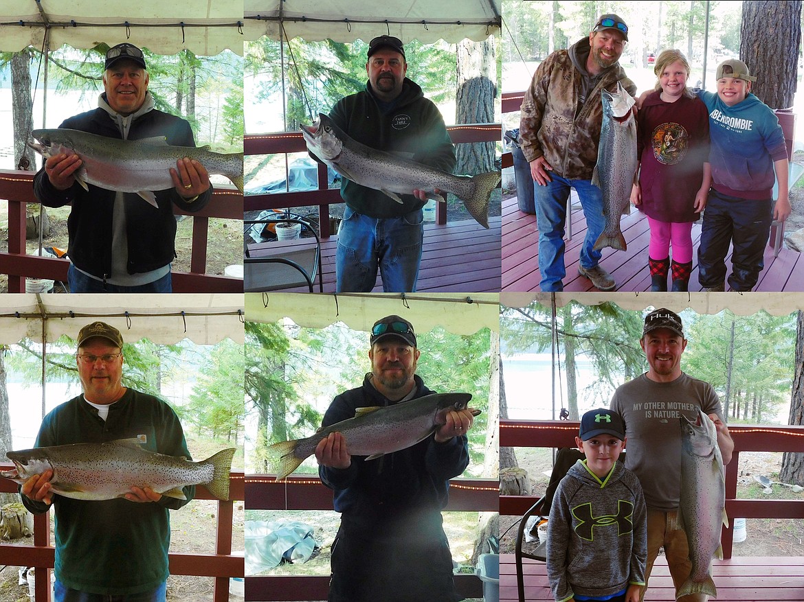 First place in the rainbow trout division went to Curt Kegel, who caught a 10-pound, 6.6-ounce fish to claim the $1,417 prize. Finishing second was Charlie Koch, who caught a 10-pound, 6.2-ounce fish to claim the $1,012 prize. Third place honors went to Piper Mervzweiller, who caught a 10-pound fish to claim the $800 prize. Darryl Judkins won fourth-place honors with an 8-pound, 7.3-ounce rainbow to claim the $405 prize, Joedy Friemel won fifth-place honors with an 8-pound, 7-ounce fish to claim the $243 prize, and Bill Moe claimed sixth-place honors with an 8-pound, 5-ounce fish and the $162 prize.