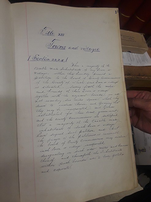 “These” — tucked away in the upper corner of a room lined with file folders, office supplies and the occasional stack of paper plates — are volumes upon volumes of leather-bound books detailing the infancy of the city’s government.