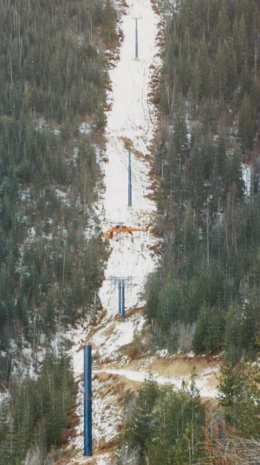 These pylons would be the supports for the 2 1/8-inch thick steel cable that carries the cars up and down the mountain using a motorized bullwheel that keeps the system in a state of continuous motion unless the engine is shut off.