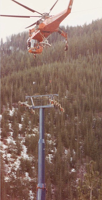 Some of the pylons were single pieces, but ranged in size from single piece all the way to three pieces and had to be placed and attached using an Erickson Air Crane Helicopter.