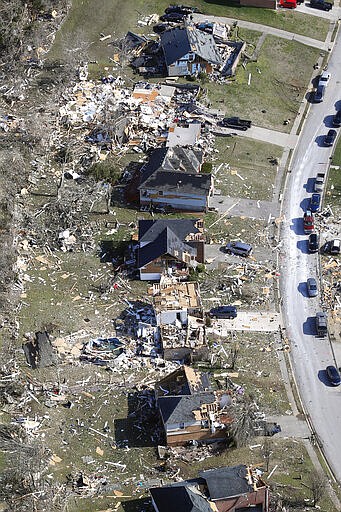 In Putnam County, 80 miles (some 130 kilometers) east of Nashville, houses and businesses were completely flattened. In one neighborhood, volunteers found five bodies. Neighbors and sheriff’s officers were still looking for two more. Later, authorities imposed an 8 p.m.-8 a.m. curfew in the county and reported one looting arrest.