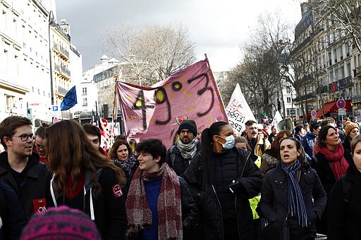 PARIS (AP) — Thousands of people marched in Paris and other French cities Saturday for a fourth consecutive week of protests against the COVID-19 health passes that everyone in the country will need shortly to enter cafes, trains and other venues.