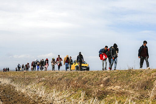 KASTANIES, Greece (AP) — Thousands of migrants and refugees searched for ways to cross Greece's border with Turkey on Tuesday, as Athens ramped up its diplomatic efforts for help from the European Union to seal off its eastern land and sea frontiers.