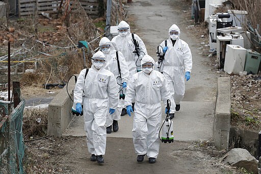 South Korea confirmed another 142 cases Wednesday morning, raising its total to 5,328, the second-highest in the world. At drive-thru virus testing centers, workers dressed head-to-toe in white protective suits leaned into cars with mouth swabs to check for the virus. Troops sprayed disinfectant on streets and alleys across the city.