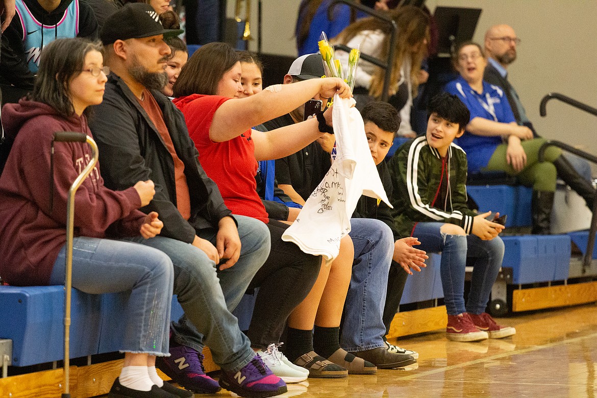 A wave of ideas came in to wear yellow headbands, armbands and more at their games in support of Avree’s battle. The entire boys basketball team showed its support before the game against Kiona-Benton on Jan. 21 by giving Avree yellow roses and a signed shirt with messages of support.