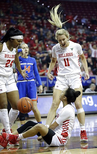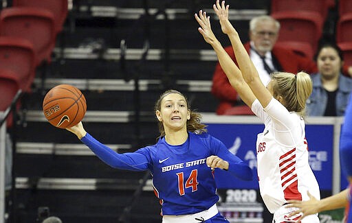 Brayden Hodgins also had 20 points for second-seeded Boise State (24-9) and A'Shanti Coleman added 16, though both fouled out in the fourth quarter. Ellie Woerner scored 10 off the bench, Christopher had 10 assists — the Broncos had helpers on their first 18 baskets into the third quarter and finished with 25 on 29 field goals — and Mallory McGwire snared 13 rebounds.