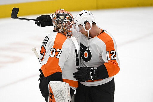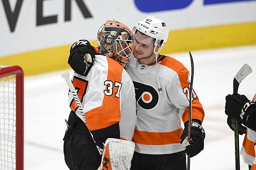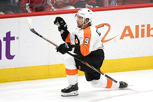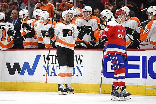 That started a roll of three goals in 10 minutes to flip momentum in a showdown of the top teams in the Metropolitan Division. Additional goals by Kevin Hayes and Tyler Pitlick during that run, one each by Ivan Provorov and Scott Laughton in the third and 25 saves from Brian Elliott helped Philadelphia move within one point of first-place Washington.