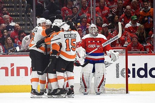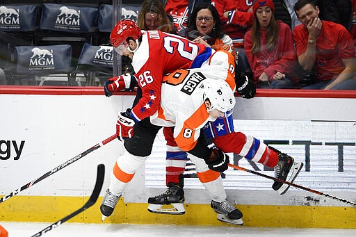 NOTES: Flyers trade-deadline acquisition Derek Grant had two assists. ... Laughton's 13th goal of the season set a career high. ... Washington went 0 for 5 on the power play. ... Capitals winger T.J. Oshie played his 800th regular-season NHL game. ... Michal Kempny was a healthy scratch for the first time this season as Washington continues to figure out its mix on defense.
