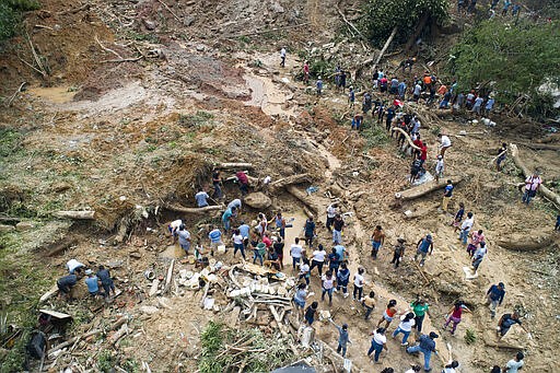 Searchers used their hands to remove rocks and rubble Wednesday, feeding the debris to lines of workers using buckets to pass the material out from landslide sites. Authorities suspended the search effort as nightfall darkened the hillside, but television showed some volunteers persisting with flashlights. As the hours slipped past, hope of finding more survivors dwindled.