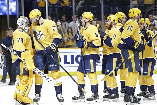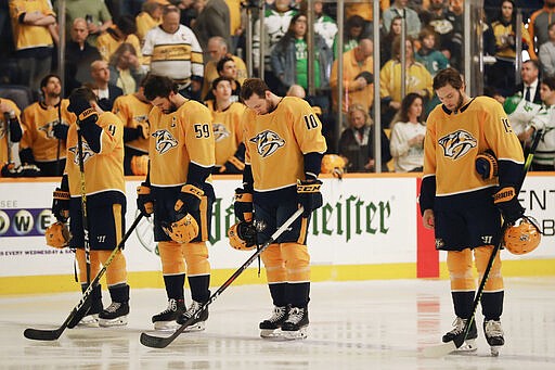 NASHVILLE, Tenn. (AP) — The Nashville Predators just missed the tornado that ripped through Music City not far from their arena, flying out of town for a road game.