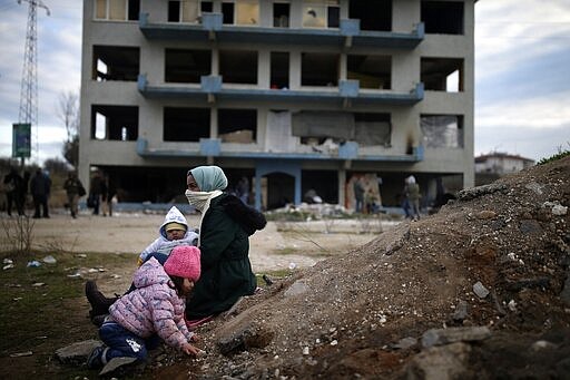 Migrants gather at an abandoned building in Edirne, near the Turkish-Greek border on Friday, March 6, 2020. No entry, says Hungary. Move along, says Greece. Watch out, says Croatia: They might have the coronavirus. This week, thousands of asylum-seekers sit at the intersection of a pair of fast-moving news stories — a spike in migration in Europe and uncertainty about the global spread of the new and sometimes deadly virus. (AP Photo/Emrah Gurel)