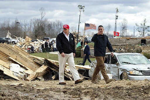 COOKEVILLE, Tenn. (AP) — President Donald Trump on Friday toured a neighborhood reduced to rubble by a tornado earlier this week and marveled at “the tremendous heart" he witnessed. He also offered a message for survivors and those who lost family members: “We love them, they're special people," he said.