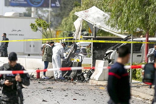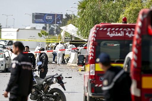 Sofiane Selliti, spokesman for the judiciary's counter-terrorism office said the attackers' motorcycle was “packed with explosives.” He described on Radio Mosaique a horrific scene, saying the attackers' body parts fragments were flung a considerable distance.