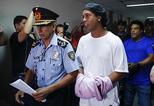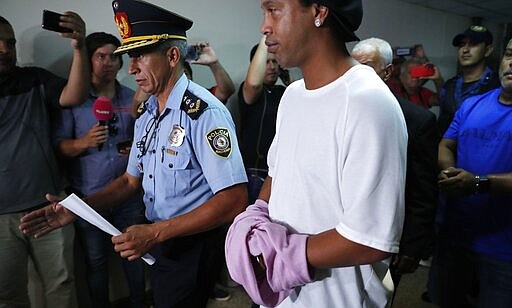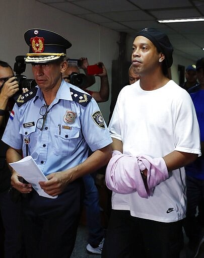 ASUNCION, Paraguay (AP) — Former soccer star Ronaldinho and his brother were taken in handcuffs to a courthouse in Paraguay on Saturday following their arrest for allegedly entering the country with falsified documents.
