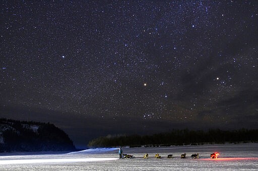 Nearly 1,000 miles (1,600 kilometers) of unforgiving terrain, doused in deep snow this year, await them as they cross two mountain ranges, travel on the frozen Yukon River and navigate the treacherous and wind-whipped Bering Sea coast to the old Gold Rush town of Nome. The winner is expected there about 10 or 11 days after the start.