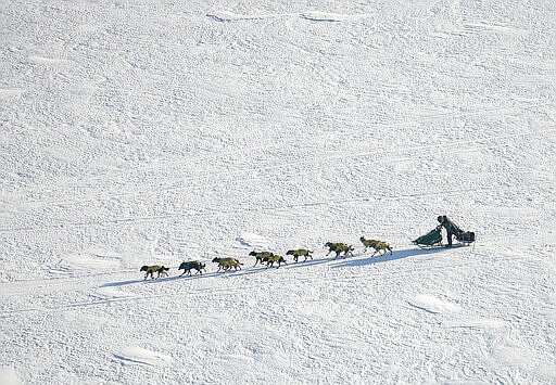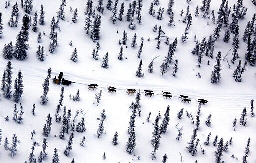 Nearly 1,000 miles (1,600 kilometers) of unforgiving terrain, doused in deep snow this year, await them as they cross two mountain ranges, travel on the frozen Yukon River and navigate the treacherous and wind-whipped Bering Sea coast to the old Gold Rush town of Nome. The winner is expected there about 10 or 11 days after the start.