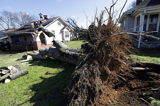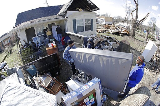 Over at the corner of 16th Ave. North and Knowles Street, one of the most heavily damaged residential blocks, new city councilman Brandon Taylor stopped to talk with Robert Sherrill of the nonprofit Impact Youth Outreach. Taylor said city leaders already are discussing ways to help residents rebuild.