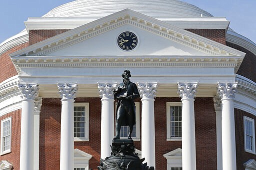 CHARLOTTESVILLE, Va. (AP) — His name still adorns much of the city, from the public library to a private winery. And from the foot of a mountain dedicated to him, his statue still gazes out over the university he founded.