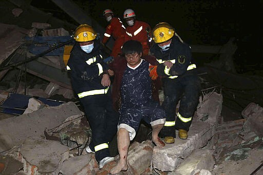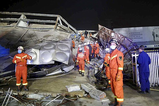 BEIJING (AP) — At least 10 people were killed in the collapse of Chinese hotel that was being used to isolate people who had arrived from other parts of China hit hard by the coronavirus outbreak, authorities said Sunday.