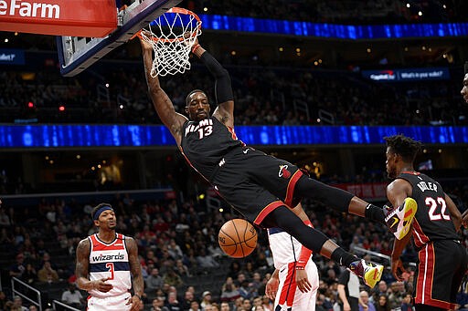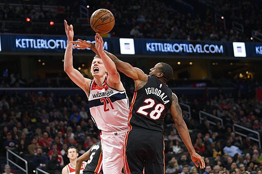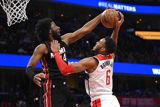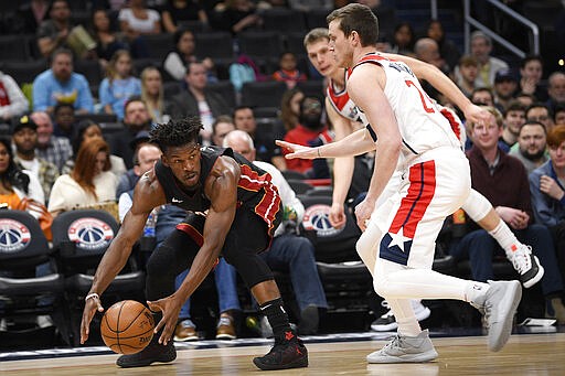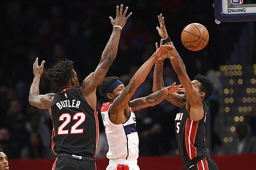Miami's victory helped its playoff positioning; it is fourth in the Eastern Conference. Washington began the day ninth in the East but 4½ games out of the eighth and last playoff spot.