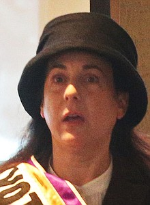 In period costume with minimal props, McClinton enthusiastically pulled her audience into the everyday realities women experienced without a legal voice. Behind her a film moved in sync with her dialogue, filling the auditorium with the sound of horses trotting on cobblestone, women stirring milk into their tea, speeches being read from street corners, and letters from soldiers read aloud.