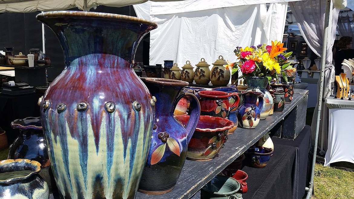 Tom uses a strategy known as reduction firing to give his products their striking colors, with rich blues and deep reds. He said the key to his artwork is his “relationship with the fire.