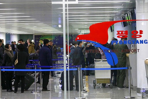 Seemingly dozens of passengers, most of them masked and some accompanied by children, lined up at Pyongyang International Airport. North Korean health workers wearing white protective suits scanned them for fevers.