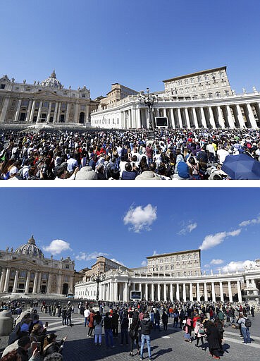 The measure — which was announced on Saturday — was aimed at discouraging crowds from gathering in the square, where on days with good weather like this Sunday as many as 40,000 people can turn out to watch the pope in the window. Several thousands of tourists and faithful turned out anyway, scattered across the vast, cobblestone square.