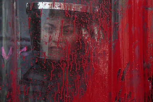 Earlier, activists had painted the names of many of the thousands of women killed each year in Mexico on the ground of the capital's iconic Zocalo plaza.