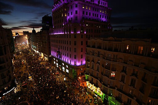Spanish health authorities did not put any restrictions on the march, but recommended that anyone with symptoms similar to those of the new coronavirus stay home. Authorities said 120,000 people participated in Madrid’s march, down from 350,000 last year.