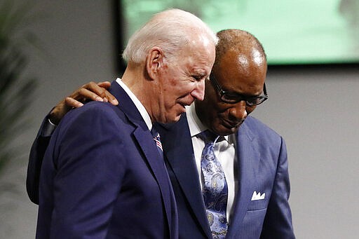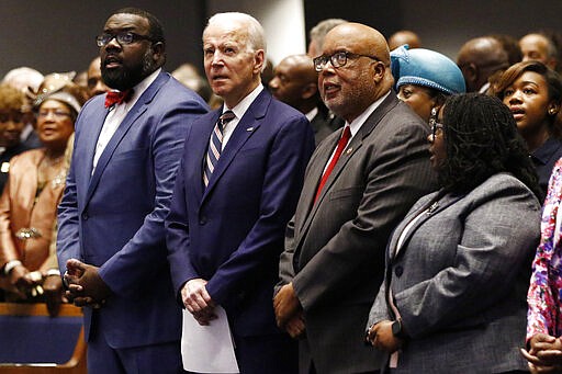 Biden was welcomed by applause at New Hope Baptist Church, where he was accompanied by the NAACP national president, Derrick Johnson, and by U.S. Rep. Bennie Thompson, both of whom are from Mississippi. They sat in the front row, and Biden sang along with the congregation: “Oh, victory in Jesus, my savior forever.”