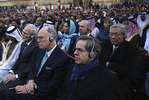 In a sign of international support for Ghani, his ceremony — aired on state TV — was attended by Washington's peace envoy Zalmay Khalilzad, Gen. Austin S. Miller, the head of U.S. forces in Afghanistan, as well as a number of foreign dignitaries including the U.S. Embassy’s charge d’affaires and Tadamichi Yamamoto, the U.N. Secretary General's personal representative to Afghanistan.