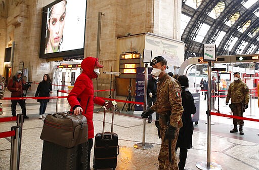 Streets in Milan, Italy's financial hub and the main city in Lombardy, were unseasonably quiet. For the first time, checkpoints were set up at the city's main train station to screen travelers. People at Milan Central Station were required to sign a police form, self-certifying why they were traveling.