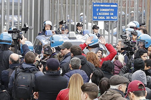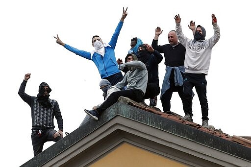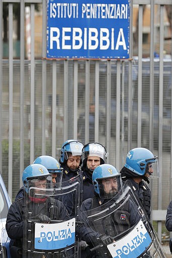 ROME (AP) — Tensions in Italy's overcrowded prisons erupted Monday over new coronavirus containment measures, with riots in at least two dozen lock-ups and the deaths of six inmates who broke into an infirmary and overdosed on methadone.